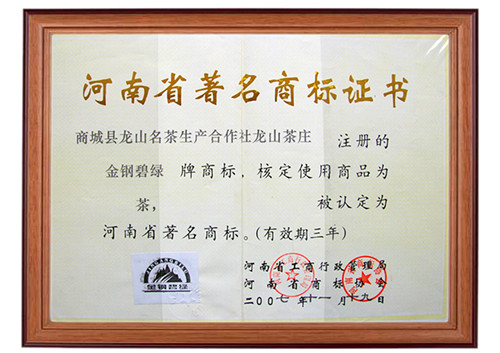 2007年河南省著名商标证书