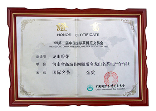 龙山碧芽获国际名茶金奖证书